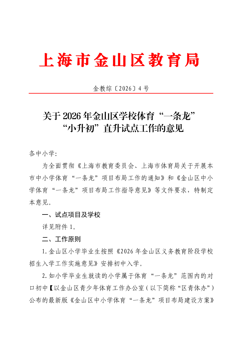 1.2026年金山区学校体育“一条龙”“小升初”优秀体育学生直升计划表