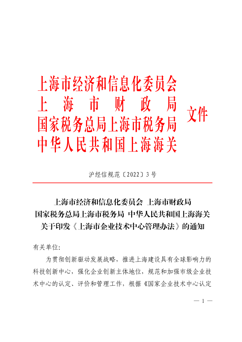 上海市经济和信息化委员会(以下简称市经济信息化委)、上海市财政局(以下简称市财政局)、国家税务总局上海市税务局(以下简称市税务局)、中华人民共和国上海海关(以下简称上海海关)共同负责市级企业技术中心认定工作。市经济信息化委牵头负责市级企业技术中心认定的组织申报、评价管理和国家企业技术中心培育等工作。