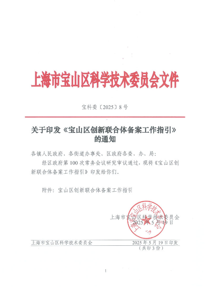 6.申请备案。牵头单位将备案申报材料提交宝山区科学技术委员会(以下简称“区科委”),区科委负责对备案申报材料进行审核,对符合条件的创新联合体进行公示,公示无异议的予以备案。备案有效期一般不超过3年,有效期满可按程序重新申请备案。