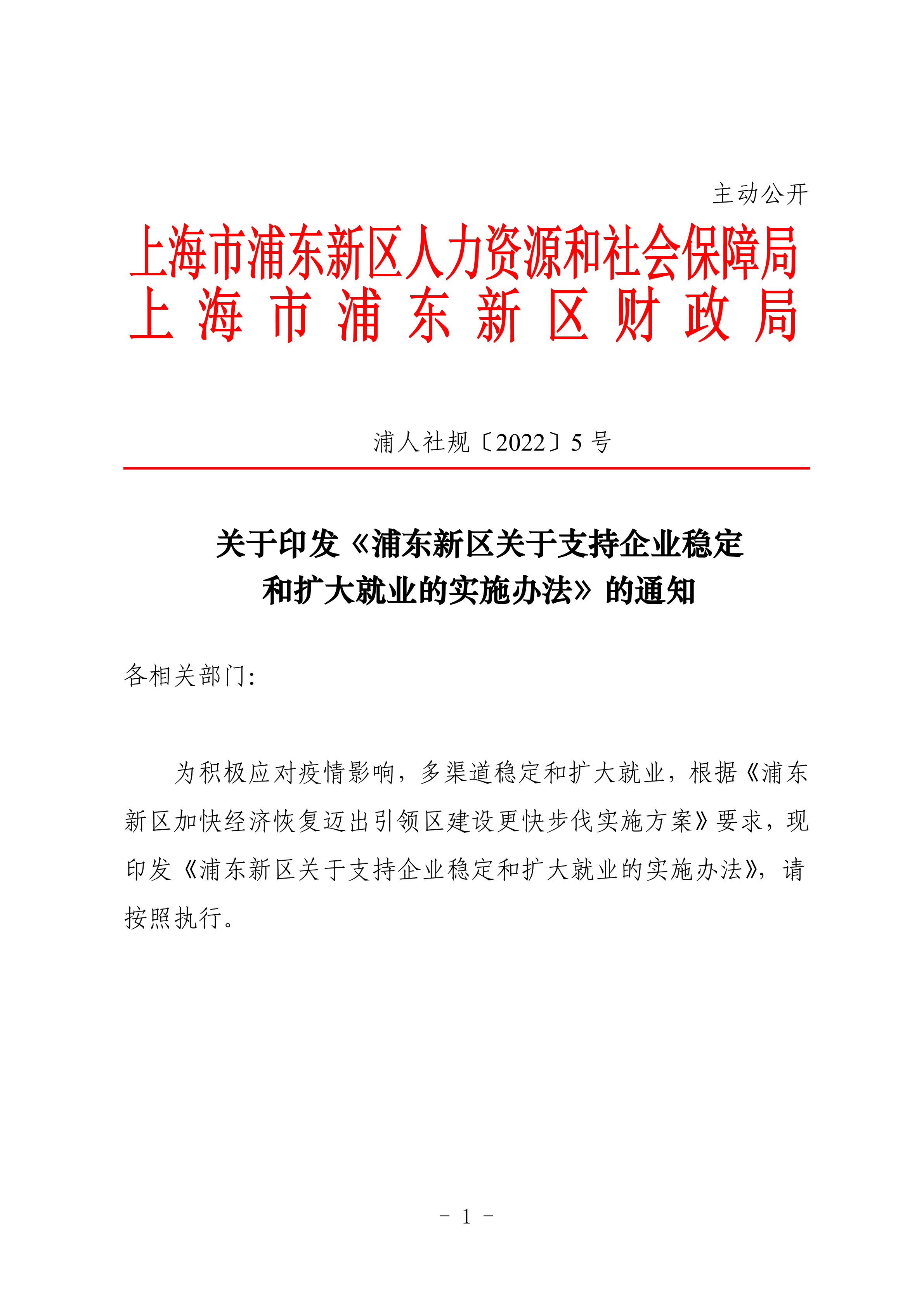 为积极应对疫情影响,多渠道稳定和扩大就业,根据《浦东新区加快经济恢复迈出引领区建设更快步伐实施方案》要求,现印发《浦东新区关于支持企业稳定和扩大就业的实施办法》,请按照执行。