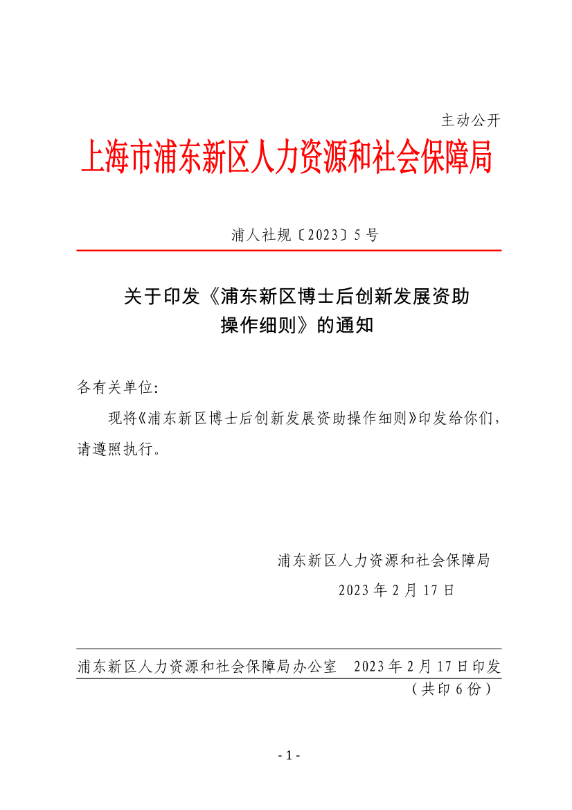 关于印发《浦东新区博士后创新发展资助操作细则》的通知