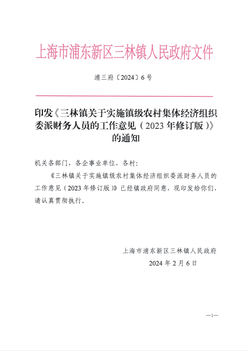 三林镇关于实施镇级农村集体经济组织委派财务人员的工作意见(2023年修订版)