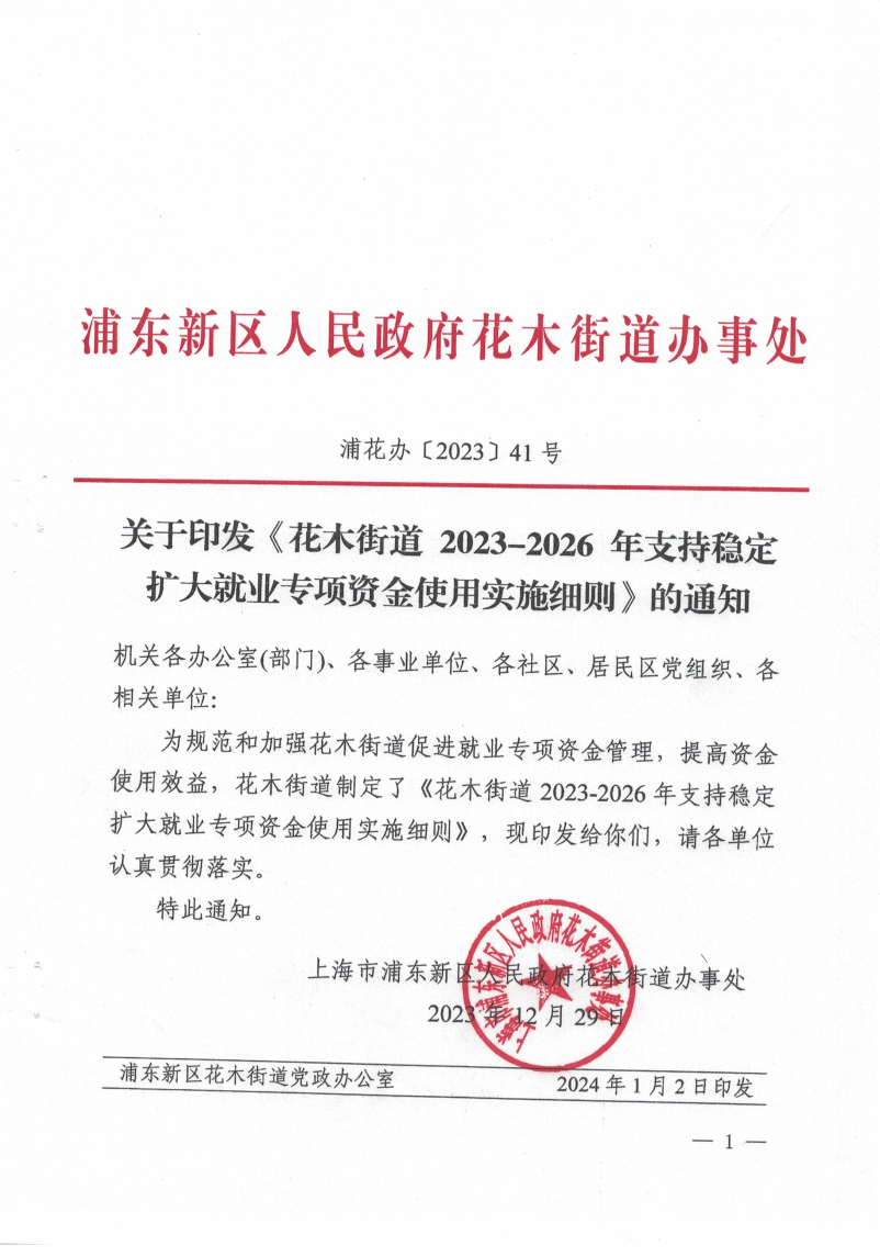 为规范和加强花木街道促进就业专项资金管理,提高资金使用效益,花木街道制定了《花木街道2023-2026年支持稳定扩大就业专项资金使用实施细则》,现印发给你们,请各单位认真贯彻落实。