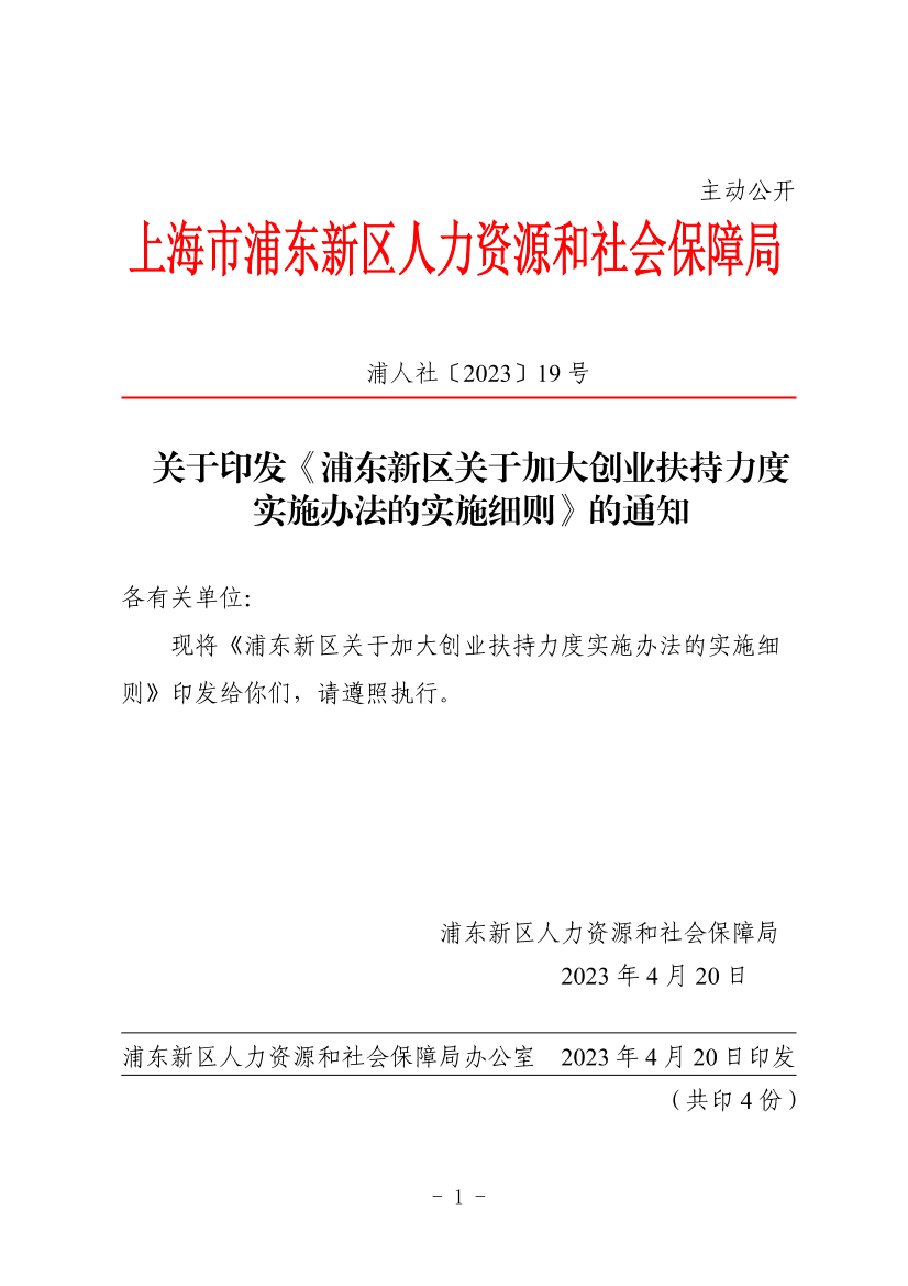 关于印发《浦东新区关于加大创业扶持力度实施办法的实施细则》的通知