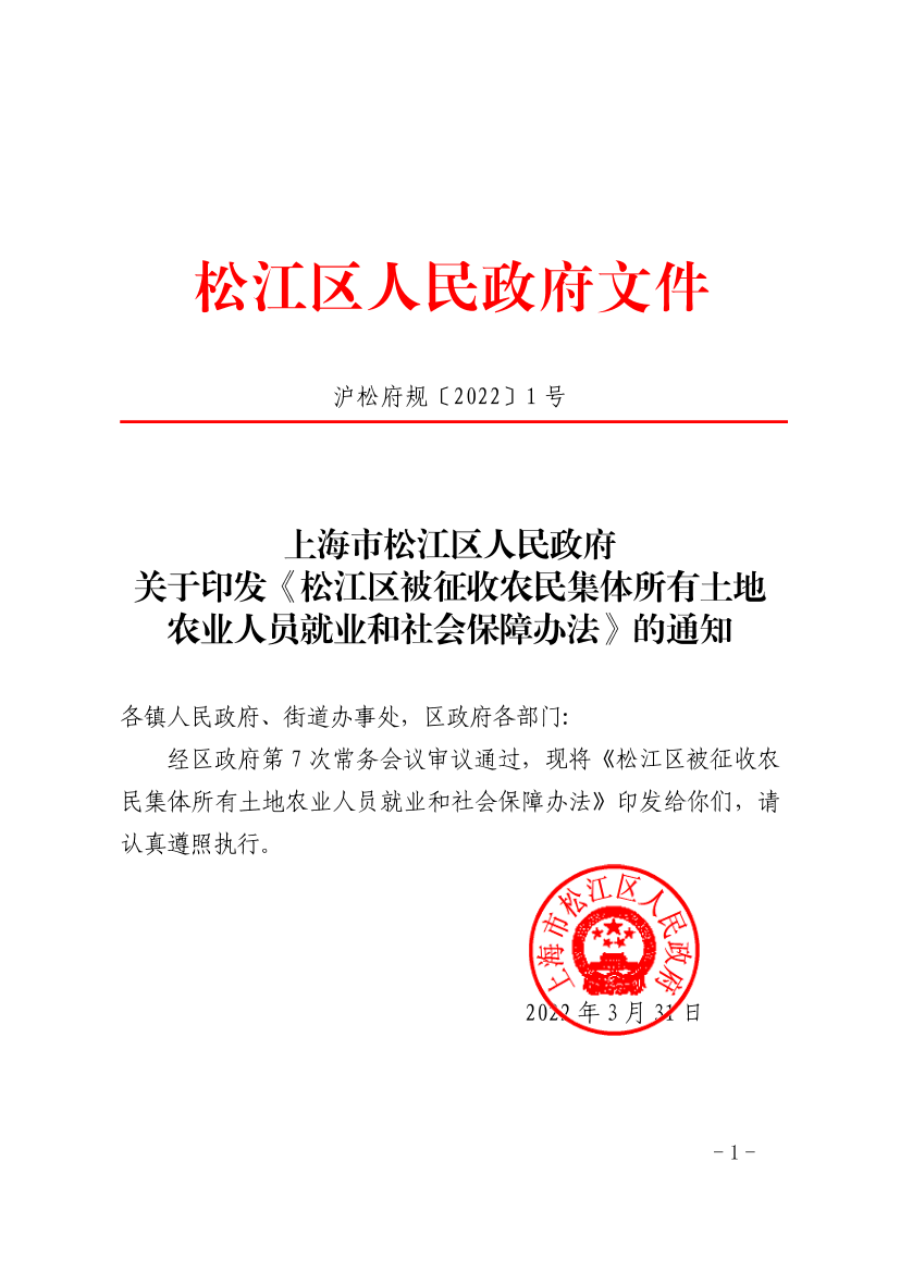 关于印发《松江区被征收农民集体所有土地农业人员就业和社会保障办法》的通知