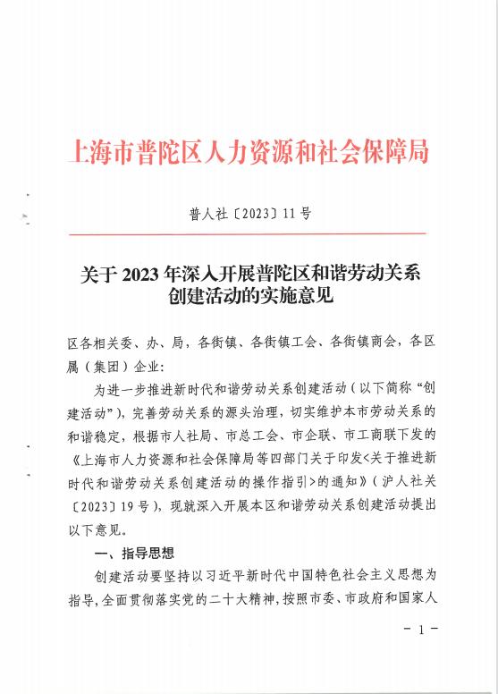为进一步推进新时代和谐劳动关系创建活动(以下简称“创建活动”),完善劳动关系的源头治理,切实维护本市劳动关系的和谐稳定,根据市人社局、市总工会、市企联、市工商联下发的《上海市人力资源和社会保障局等四部门关于印发<关于推进新时代和谐劳动关系创建活动的操作指引>的通知》(沪人社关〔2023〕19号),现就深入开展本区和谐劳动关系创建活动提出以下意见。