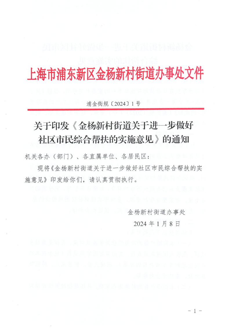 关于印发《金杨新村街道关于进一步做好社区市民综合帮扶的实施意见》的通知