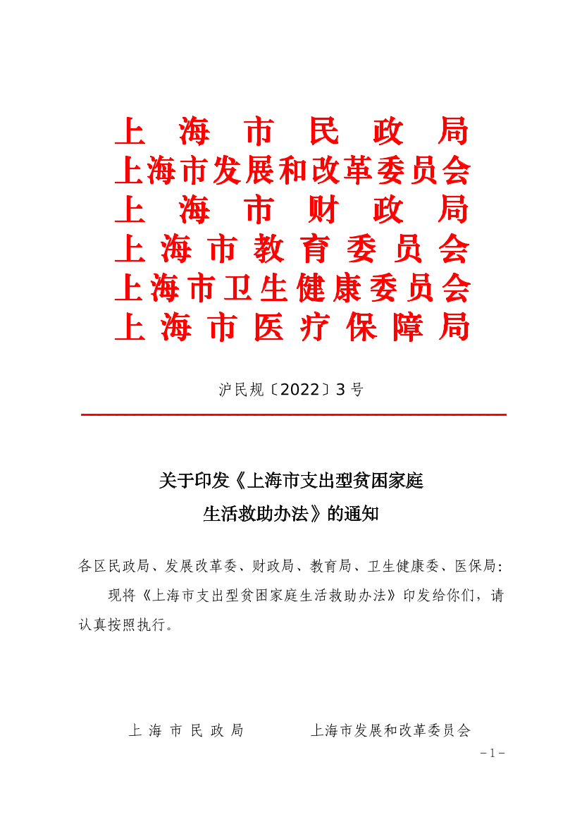 现将《上海市支出型贫困家庭生活救助办法》印发给你们,请认真按照执行。