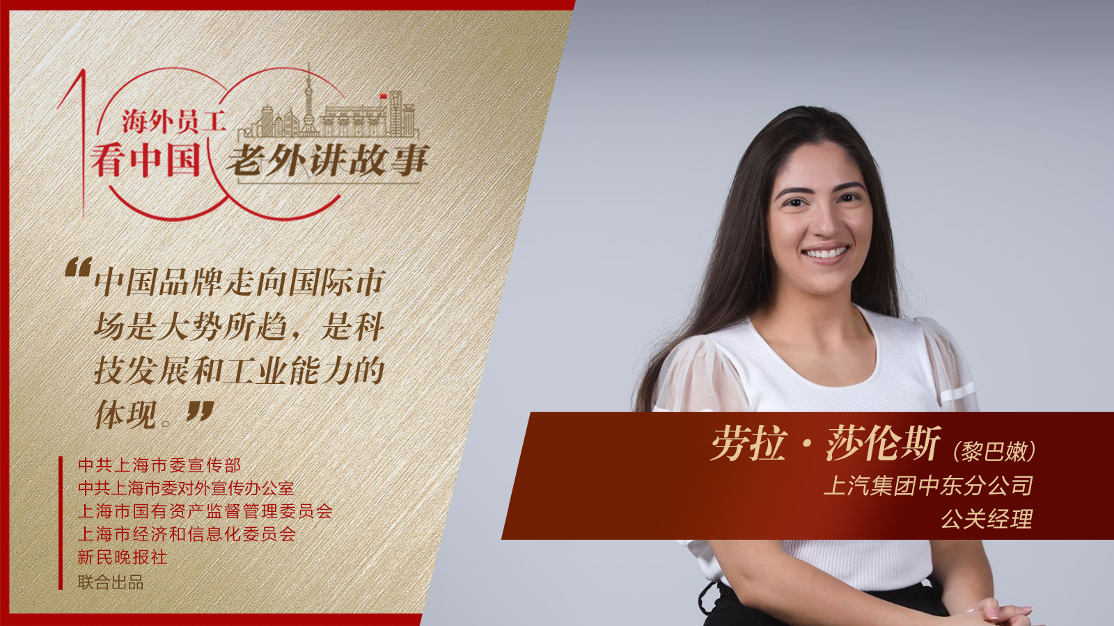 黎巴嫩女孩劳拉入职上汽集团中东分公司已2年有余,至今还记得当时拿到Offer时的兴奋与开心。“我觉得自己十分幸运,可以走进真实的中国企业,近距离了解中国文化。我和同事一起克服了新冠疫情给供应链带来的一些冲击,克服了许多困难,这让我收获颇多,个人能力得到了非常大的提升。”