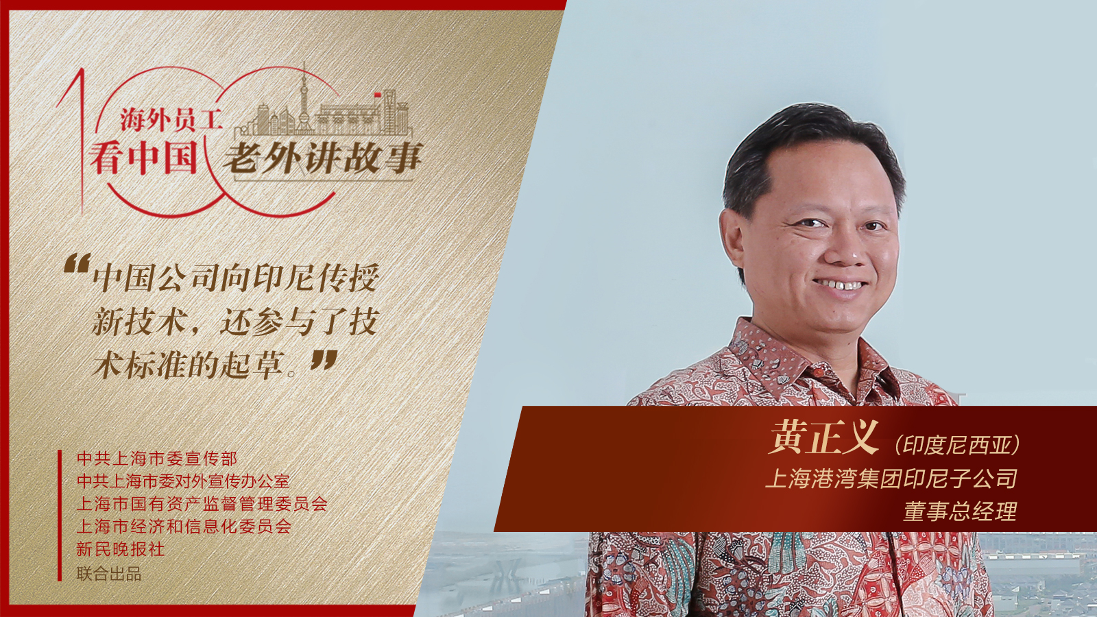 来自印度尼西亚的黄正义,于2012年加入上海港湾集团。在集团的大力支持下,他作为创始人之一,参与创立了上海港湾集团印尼子公司。在完成既定业务目标的基础上,印尼子公司还成了上海港湾集团迄今为止业绩最好的子公司。黄正义自豪地说:“我的愿景是让印尼子公司,成为印度尼西亚最大的专业地基处理建筑公司之一。”