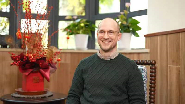 何茂林是来自美国佛罗里达州的一名“85后”,他既是长宁区江苏路第五小学的一位跨学科双语教师,也是一名音乐家。2008年,大学专业主修中文的何茂林来到中国,在北京开始了他的教育生涯。14年里,热爱中国文化的何茂林去过中国40多个城市,组织开展各种音乐活动和教学研讨会,还向中国朋友学习中国音乐、历史、文化和茶艺,在此过程中他认识了他的妻子并在上海定居。
