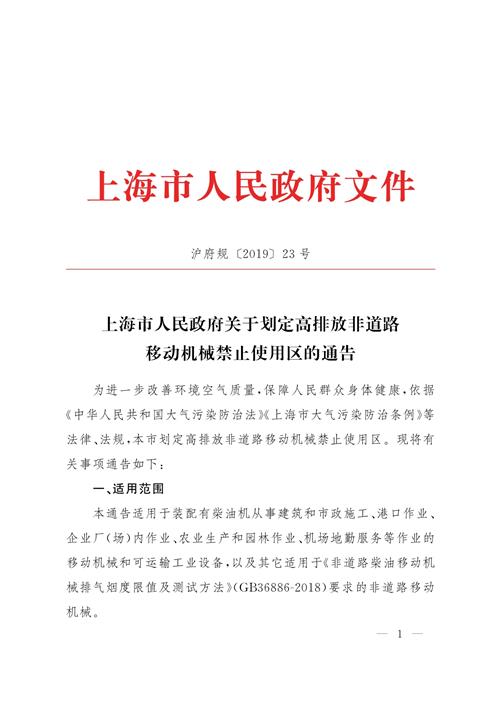 为进一步改善环境空气质量,保障人民群众身体健康,依据《中华人民共和国大气污染防治法》《上海市大气污染防治条例》等法律、法规,本市划定高排放非道路移动机械禁止使用区。现将有关事项通告如下: