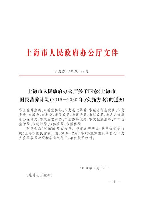 上海市人民政府办公厅关于同意《上海市国民营养计划(2019-2030年)实施方案》的通知