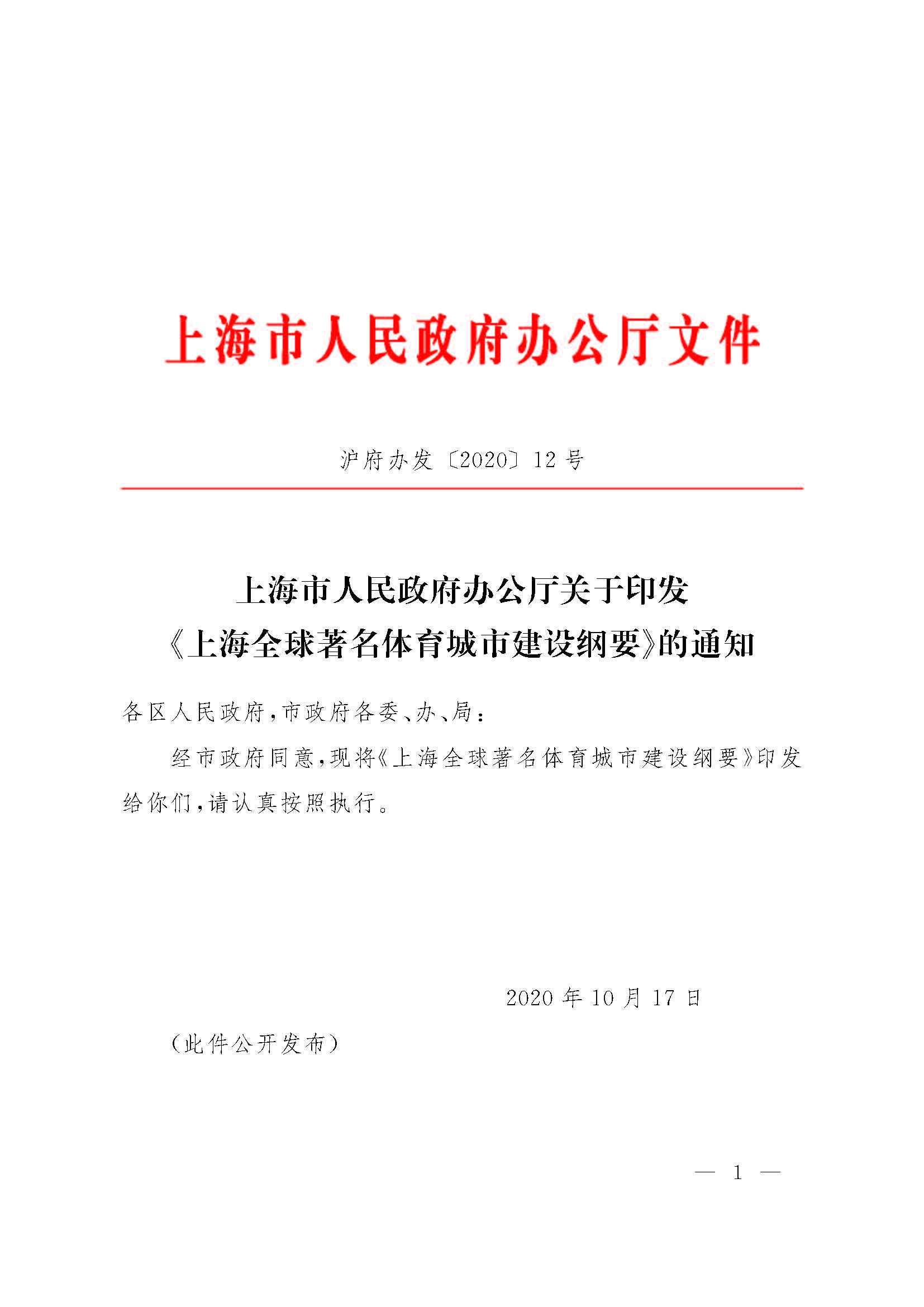 上海市人民政府办公厅关于印发《上海全球著名体育城市建设纲要》的通知