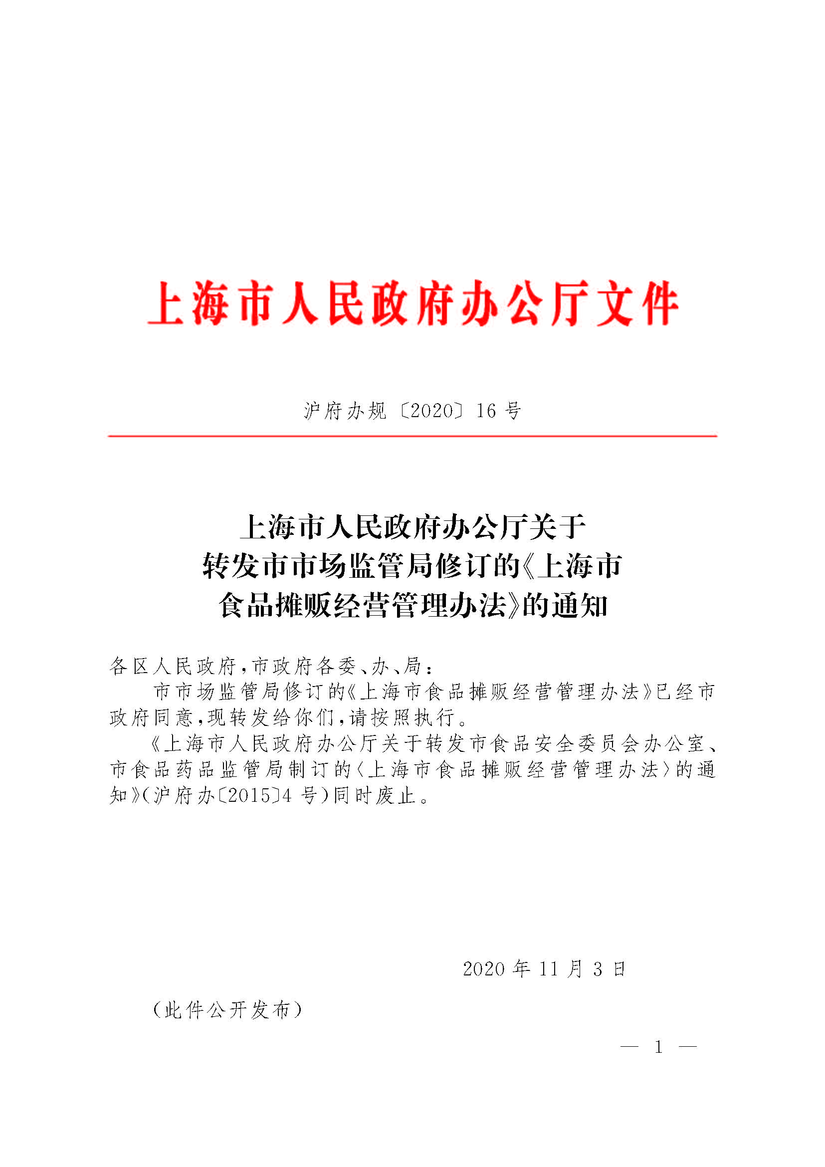 沪府办规〔2020〕16号