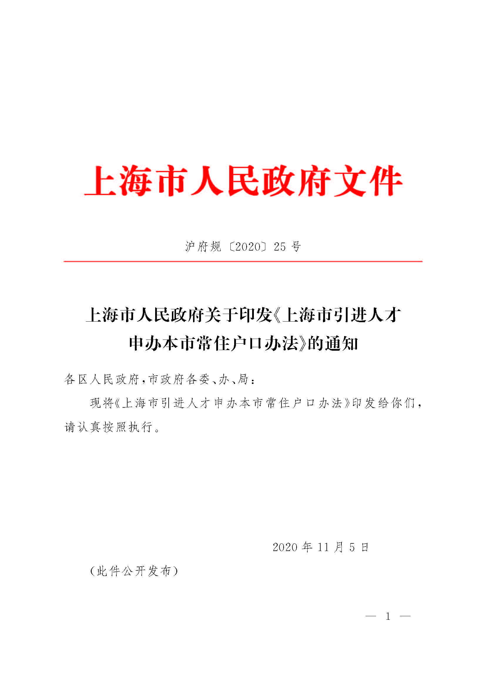 上海市人民政府关于印发《上海市引进人才申办本市常住户口办法》的通知