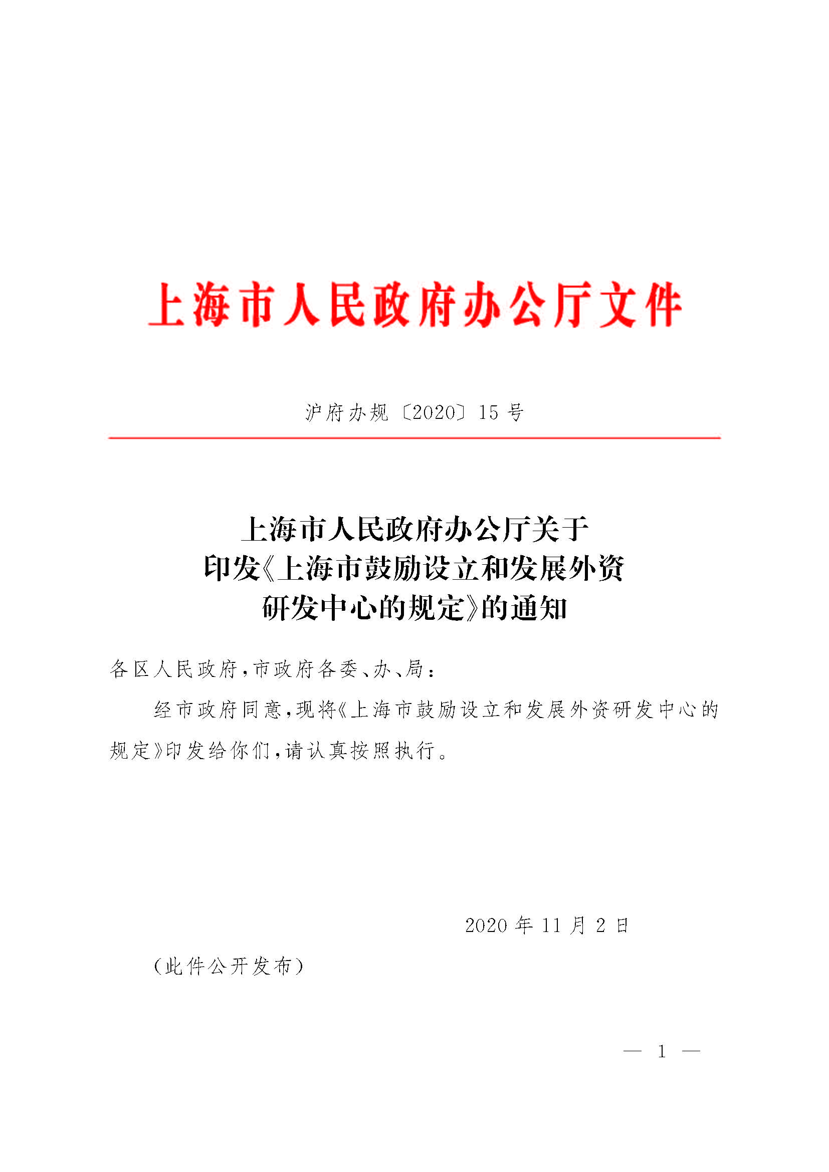 上海市人民政府办公厅关于印发《上海市鼓励设立和发展外资研发中心的规定》的通知