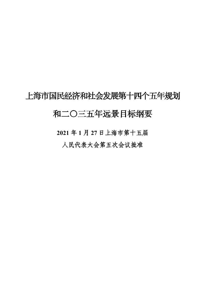 上海市国民经济和社会发展第十四个五年规划和二〇三五年远景目标纲要
