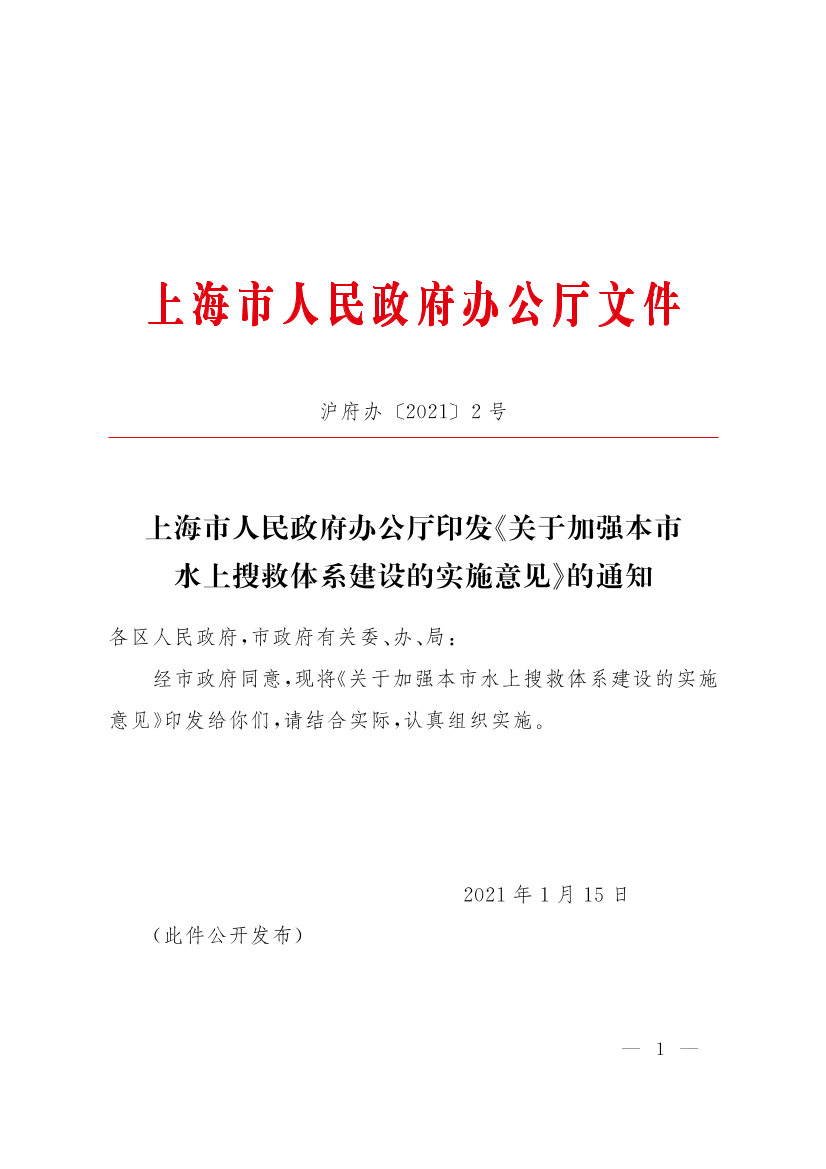 上海市人民政府办公厅印发《关于加强本市水上搜救体系建设的实施意见》的通知