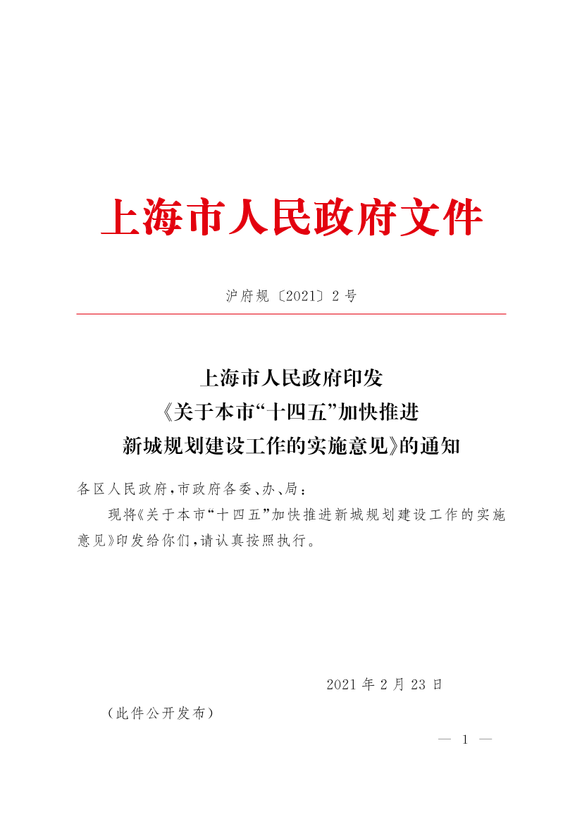 上海市人民政府印发《关于本市“十四五”加快推进新城规划建设工作的实施意见》的通知