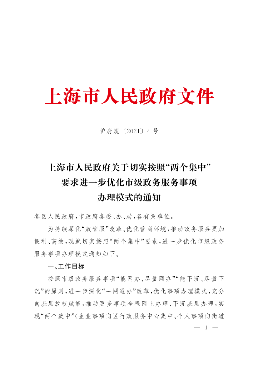 为持续深化“放管服”改革、优化营商环境,推动政务服务更加便利、高效,现就切实按照“两个集中”要求,进一步优化市级政务服务事项办理模式通知如下。
