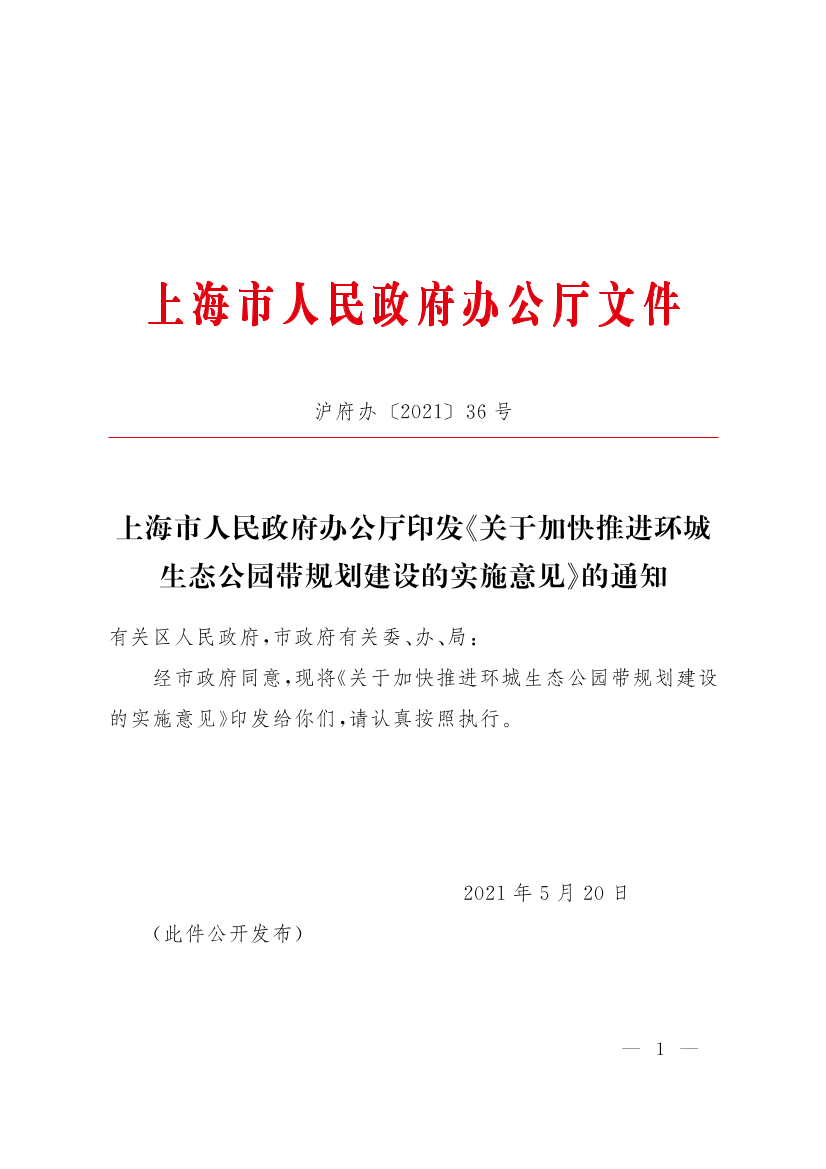 上海市人民政府办公厅印发《关于加快推进环城生态公园带规划建设的实施意见》的通知