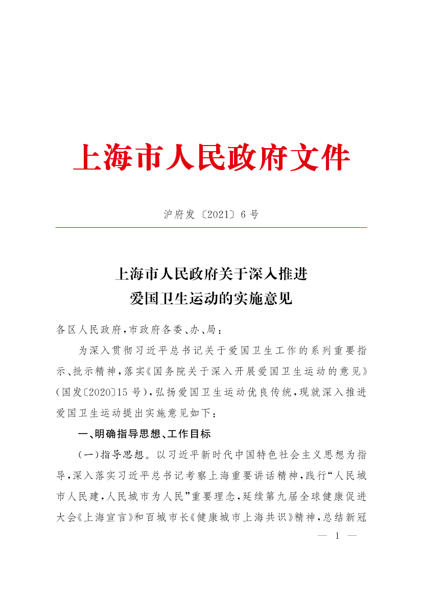 上海市人民政府关于深入推进爱国卫生运动的实施意见