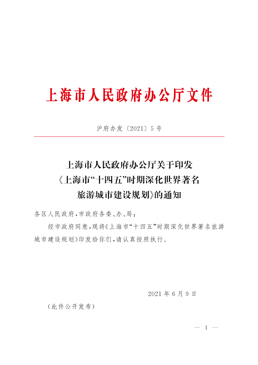 上海市人民政府办公厅关于印发《上海市“十四五”时期深化世界著名旅游城市建设规划》的通知