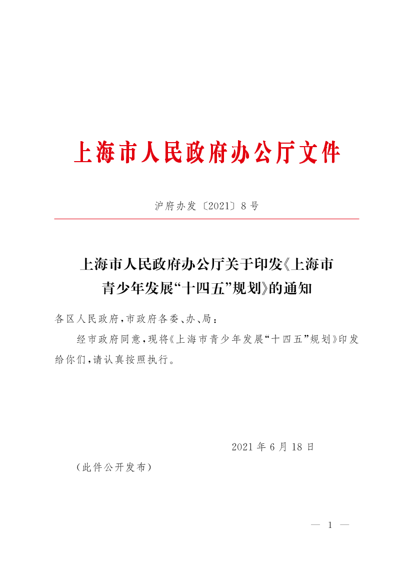上海市人民政府办公厅关于印发《上海市青少年发展“十四五”规划》的通知