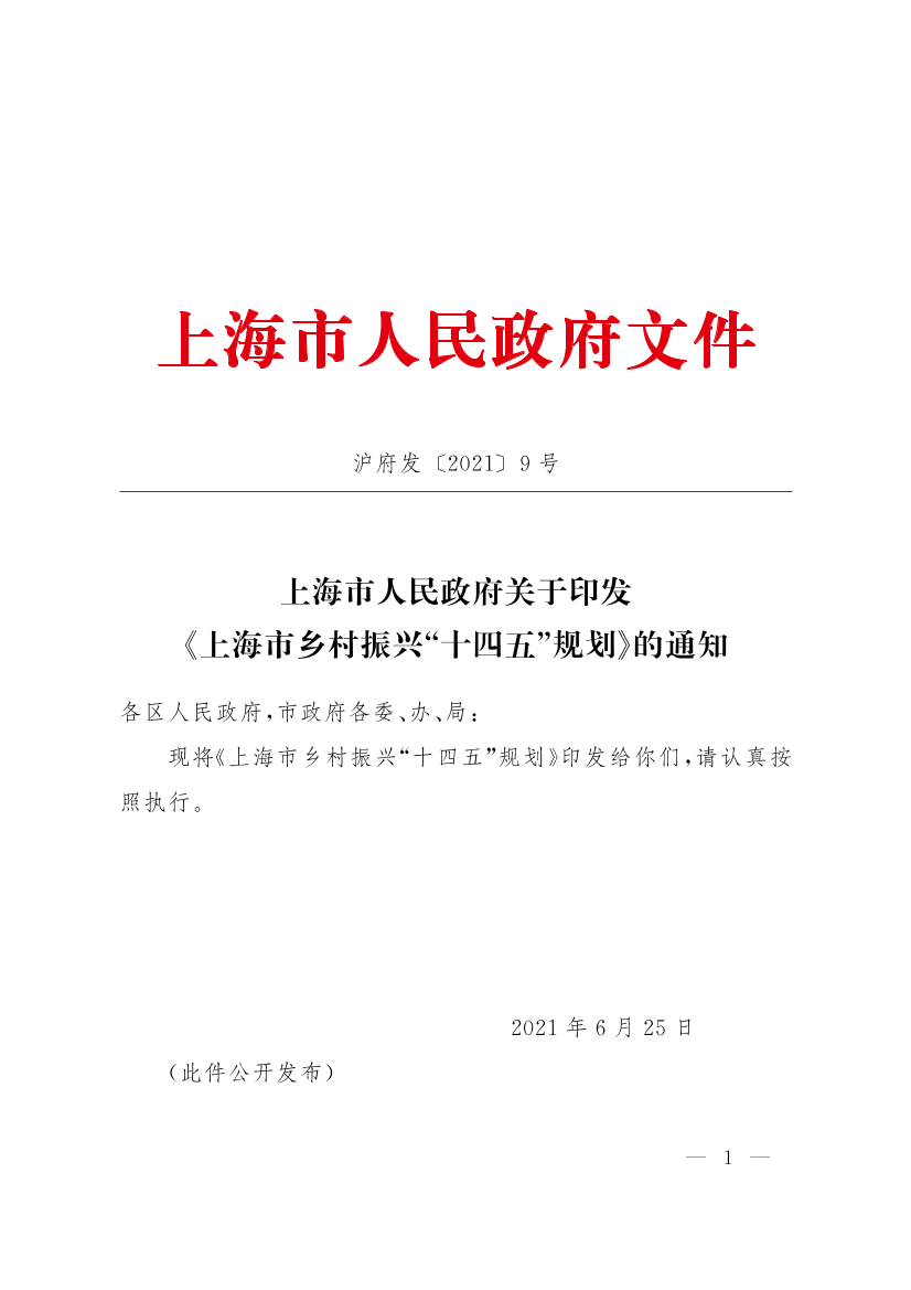 上海市人民政府关于印发《上海市乡村振兴“十四五”规划》的通知