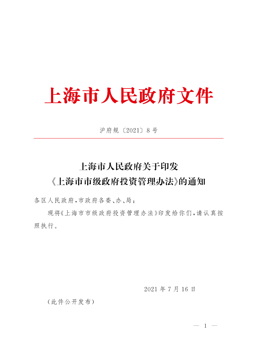 现将《上海市市级政府投资管理办法》印发给你们,请认真按照执行。