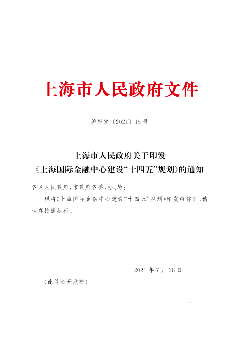上海市人民政府关于印发《上海国际金融中心建设“十四五”规划》的通知