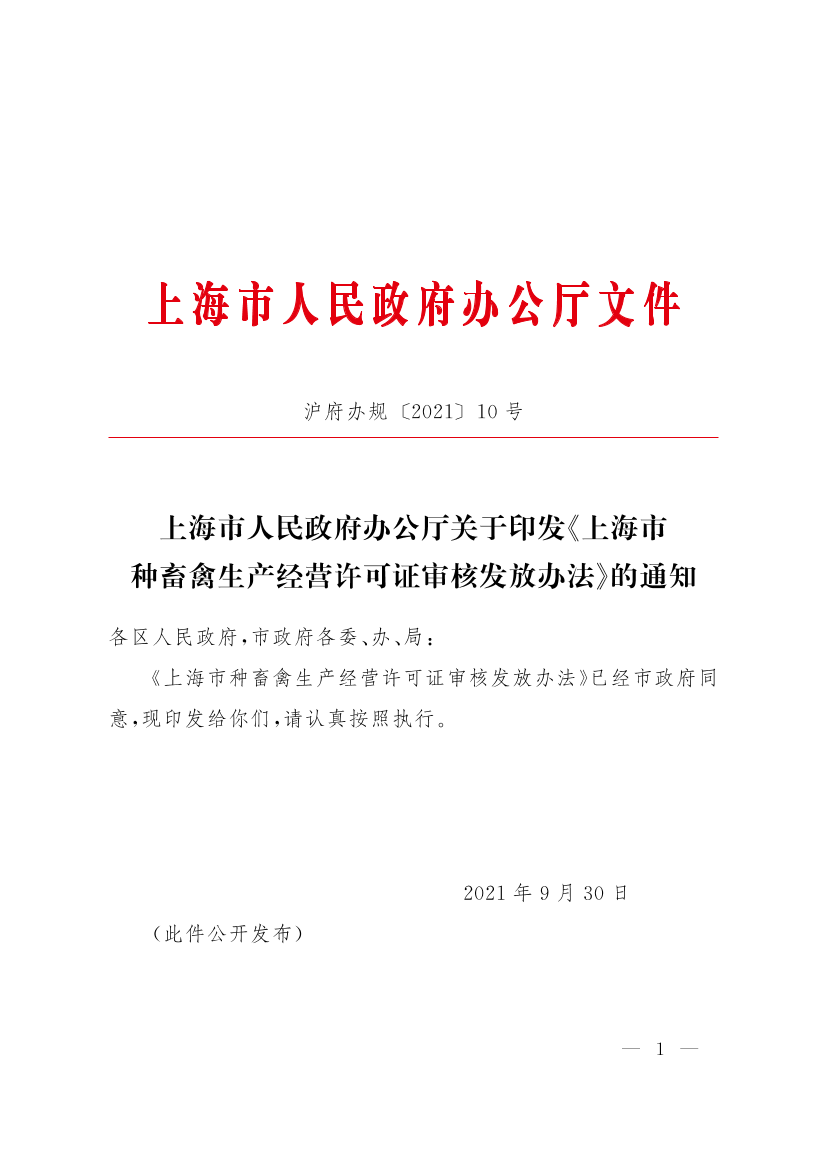 沪府办规〔2021〕10号