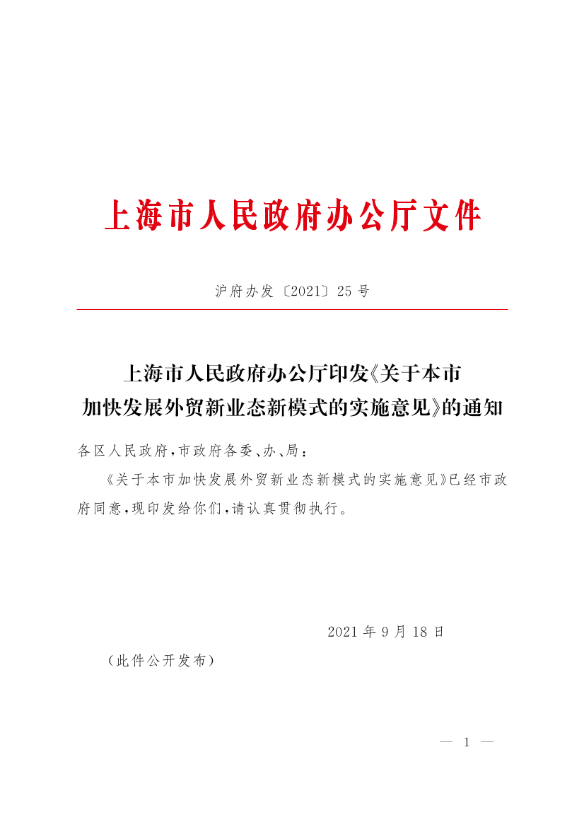 上海市人民政府办公厅印发《关于本市加快发展外贸新业态新模式的实施意见》的通知