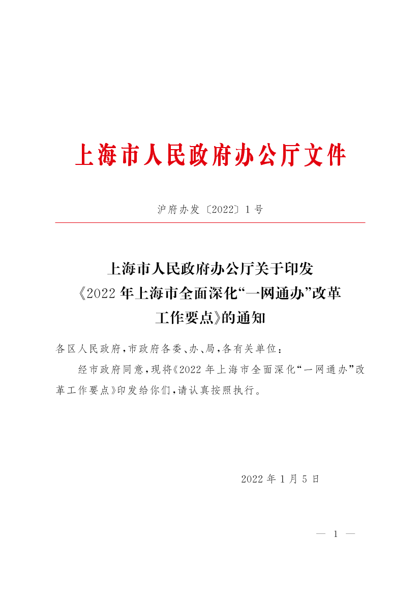 上海市人民政府办公厅关于印发《2022年上海市全面深化“一网通办”改革工作要点》的通知