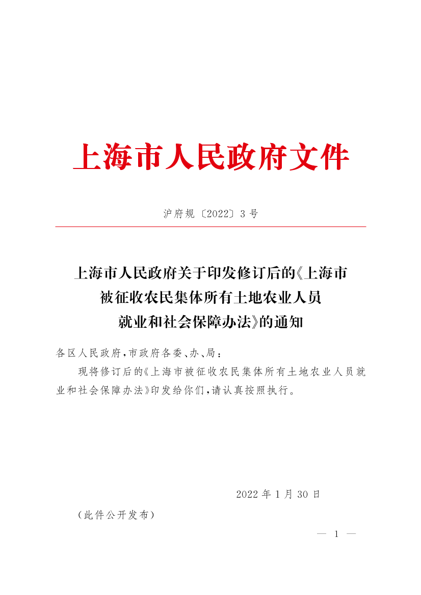 现将修订后的《上海市被征收农民集体所有土地农业人员就业和社会保障办法》印发给你们,请认真按照执行。