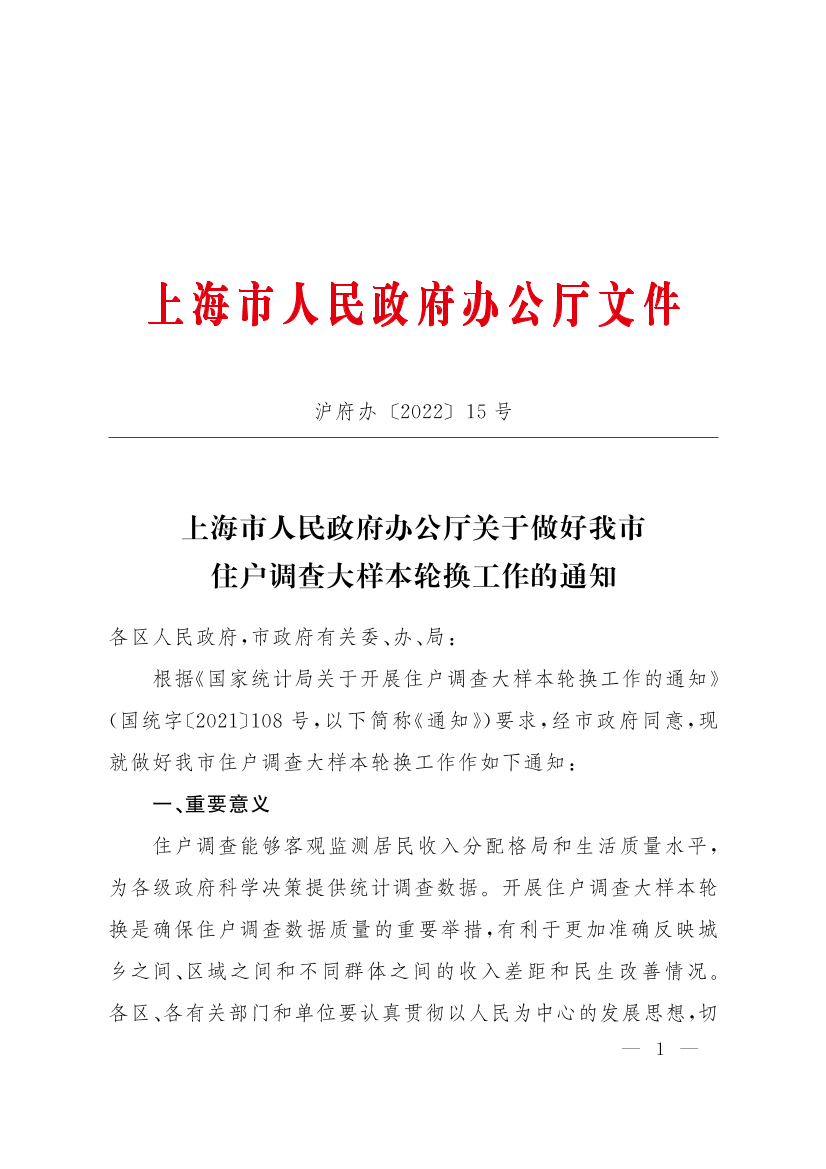 上海市人民政府办公厅关于做好我市住户调查大样本轮换工作的通知