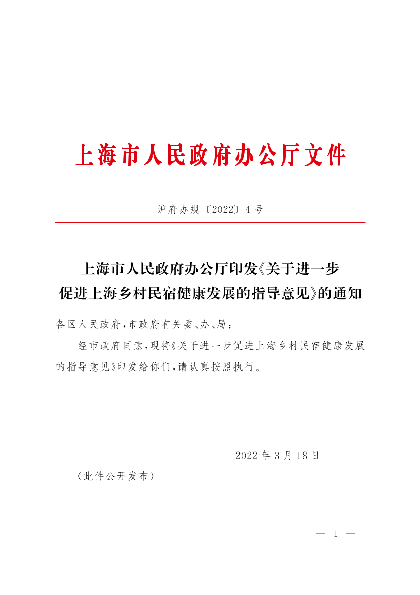 上海市人民政府办公厅印发《关于进一步促进上海乡村民宿健康发展的指导意见》的通知