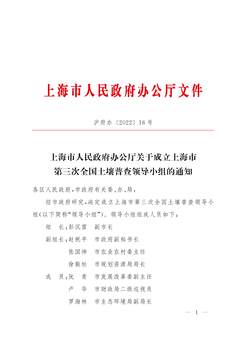 经市政府研究,决定成立上海市第三次全国土壤普查领导小组(以下简称“领导小组”)。领导小组组成人员如下:
