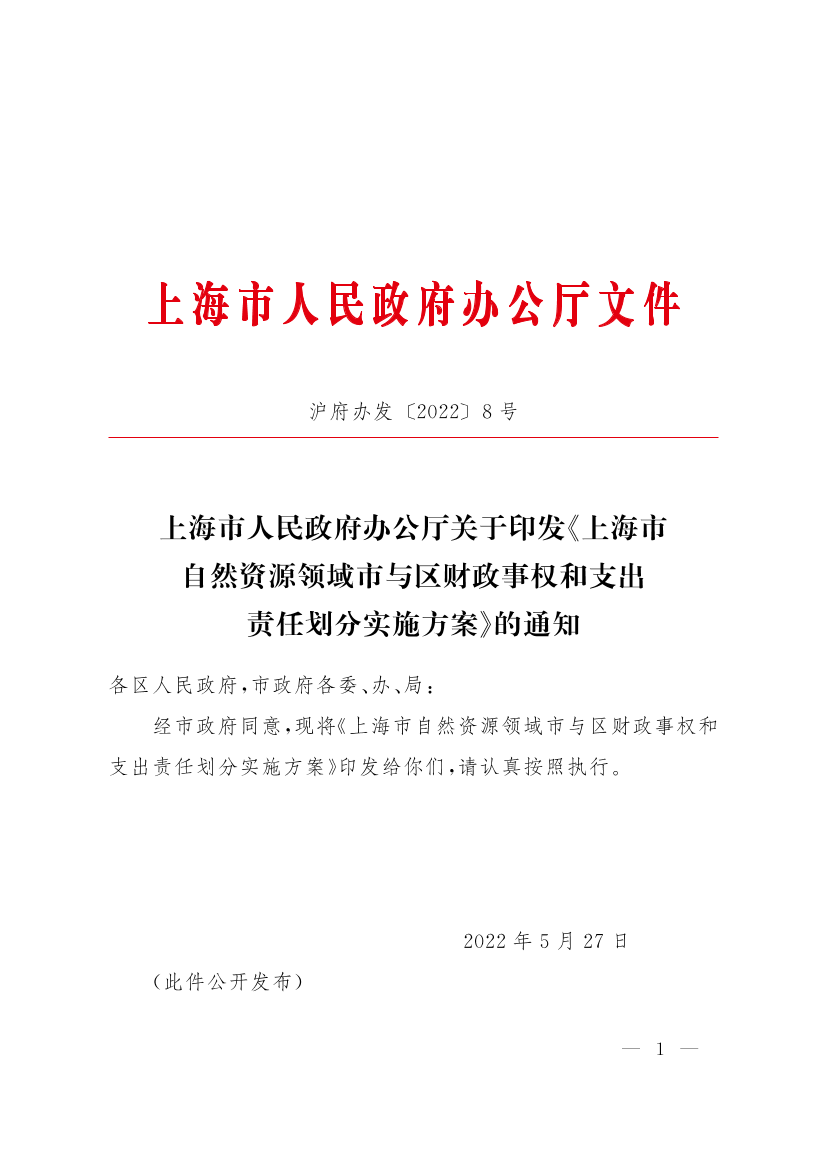 上海市人民政府办公厅关于印发《上海市自然资源领域市与区财政事权和支出责任划分实施方案》的通知