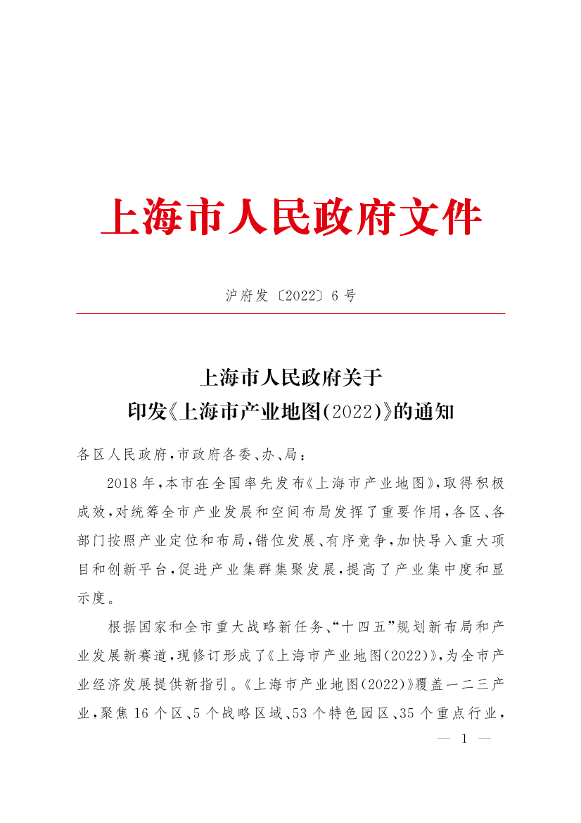 上海市人民政府关于印发《上海市产业地图(2022)》的通知