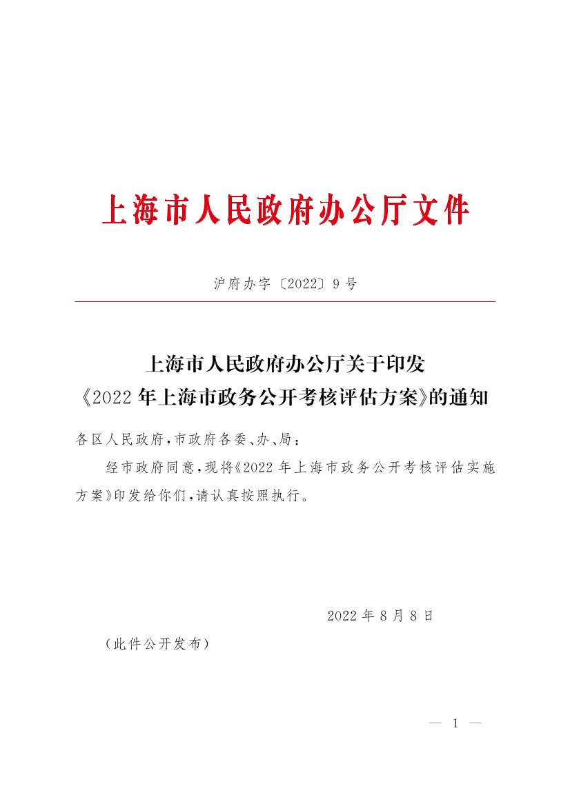 上海市人民政府办公厅关于印发《2022年上海市政务公开考核评估方案》的通知