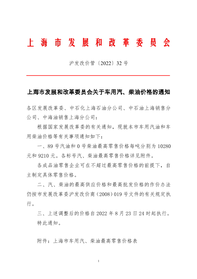 三、上述调整后的价格自2022年8月23日24时起执行。