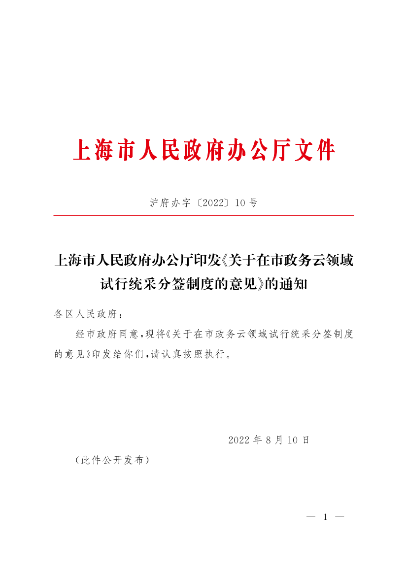 上海市人民政府办公厅印发《关于在市政务云领域试行统采分签制度的意见》的通知