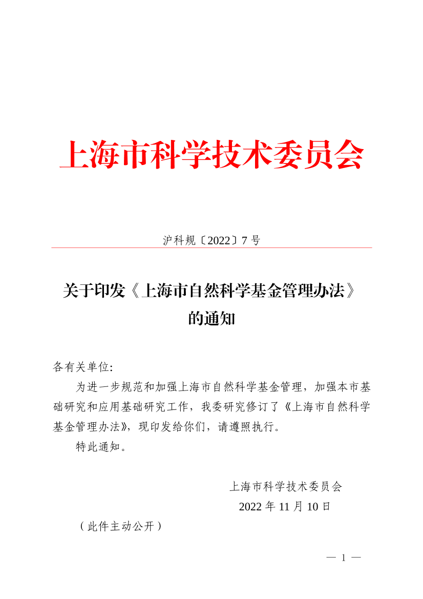 为进一步规范和加强上海市自然科学基金管理,加强本市基础研究和应用基础研究工作,我委研究修订了《上海市自然科学基金管理办法》,现印发给你们,请遵照执行。