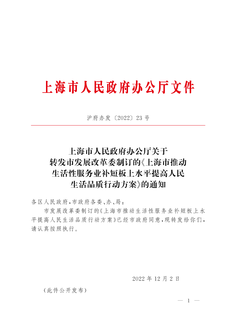 上海市推动生活性服务业补短板上水平提高人民生活品质行动方案