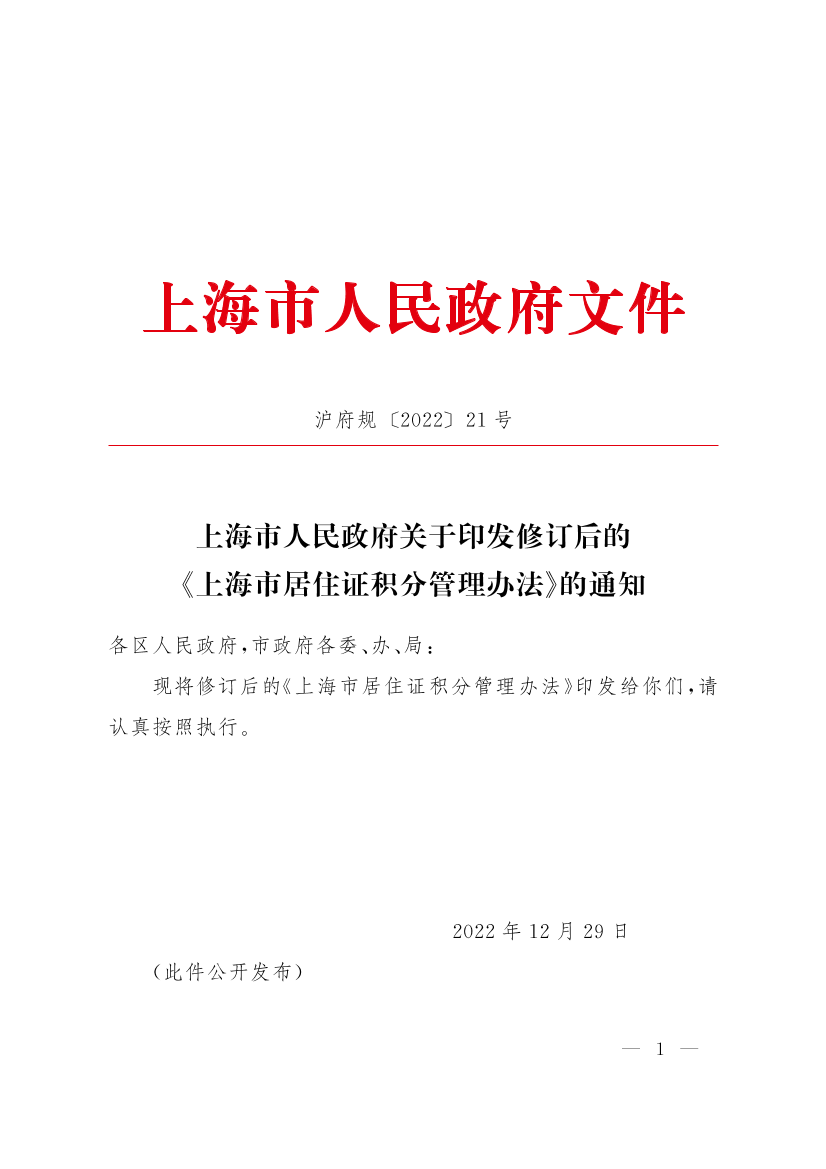 现将修订后的《上海市居住证积分管理办法》印发给你们,请认真按照执行。