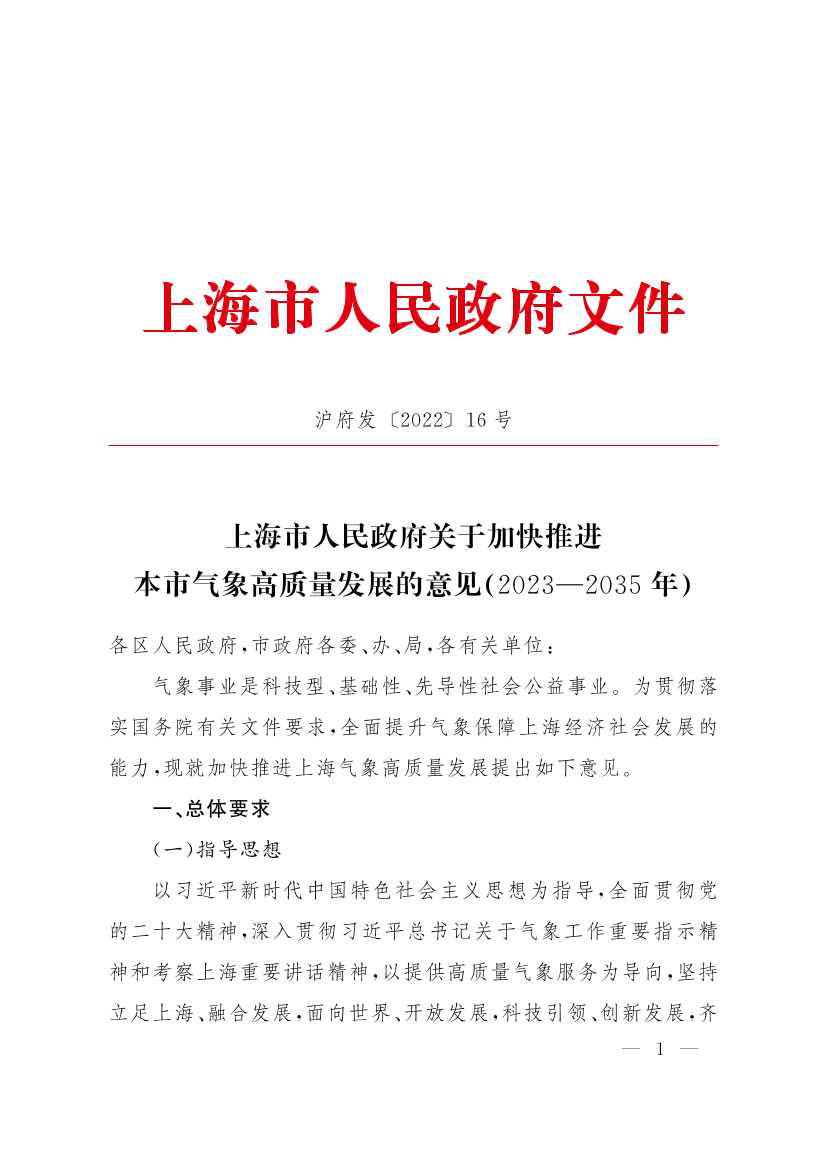 上海市人民政府关于加快推进本市气象高质量发展的意见(2023—2035年)