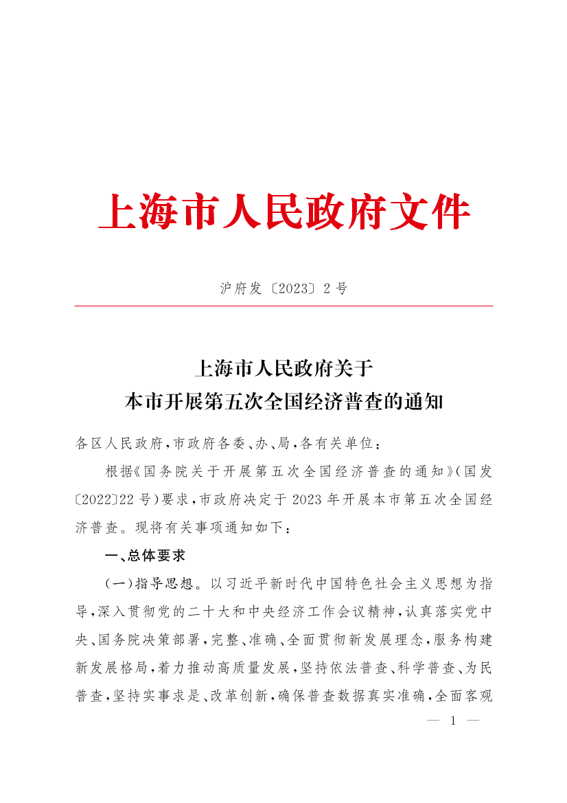 (一)指导思想。以习近平新时代中国特色社会主义思想为指导,深入贯彻党的二十大和中央经济工作会议精神,认真落实党中央、国务院决策部署,完整、准确、全面贯彻新发展理念,服务构建新发展格局,着力推动高质量发展,坚持依法普查、科学普查、为民普查,坚持实事求是、改革创新,确保普查数据真实准确,全面客观反映本市经济社会发展状况。