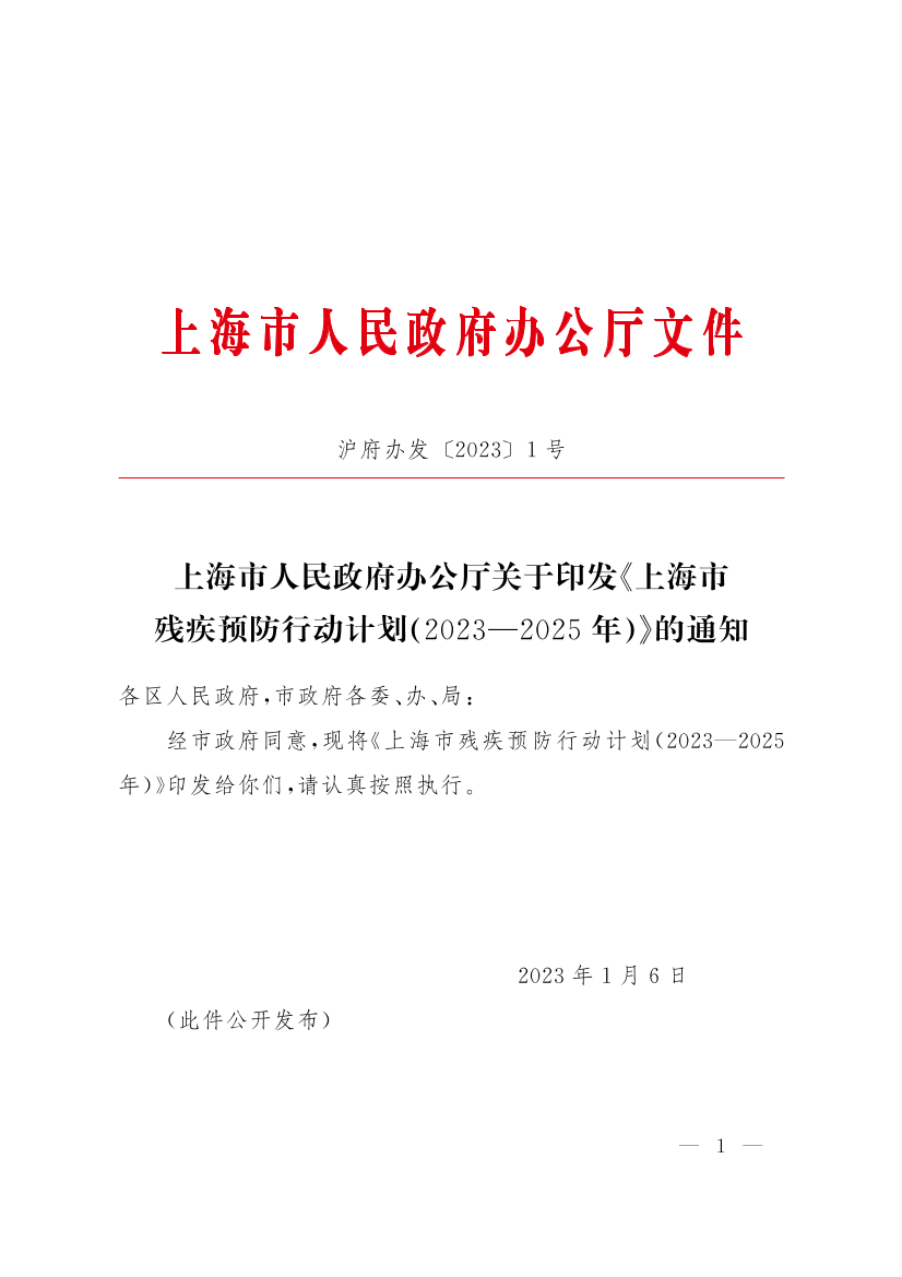 上海市人民政府办公厅关于印发《上海市残疾预防行动计划(2023—2025年)》的通知